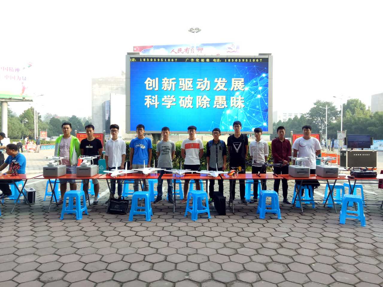 漯河市2017年科普日活动围绕“创新驱动发展,科学破除愚昧”的主题,现场设立了创新驱动发展暨科普创客,科技扶贫暨科普惠农成果,科普大篷车科技展品及航模、机器人表演,身边科学暨科普知识宣传展板四大专题展区,我院无人机班组携带航模机、航拍机等多种无人机机型在展示中受人瞩目,参观展览的群众纷纷驻足观看、询问。在仪式开始之前,我院无人机班组先进行了航拍机的飞行表演,五架航拍机起飞平稳,以“大鹏展翅”和“斜插云霄”等不同队形不断变换,惹的众人纷纷抬头观望。随后又进行了航模的飞行表演,四架航模机在隆隆声中如离弦之箭飞驰蓝天,爬升、盘旋、列队动作堪称完美。在仪式开始之后,一架航拍机又完成了对整个活动的空中拍摄,得到了市科协领导的高度称赞,栗金生主席还饶有兴致地询问了解我院无人机专业的发展状况,鼓励同学们好好努力。