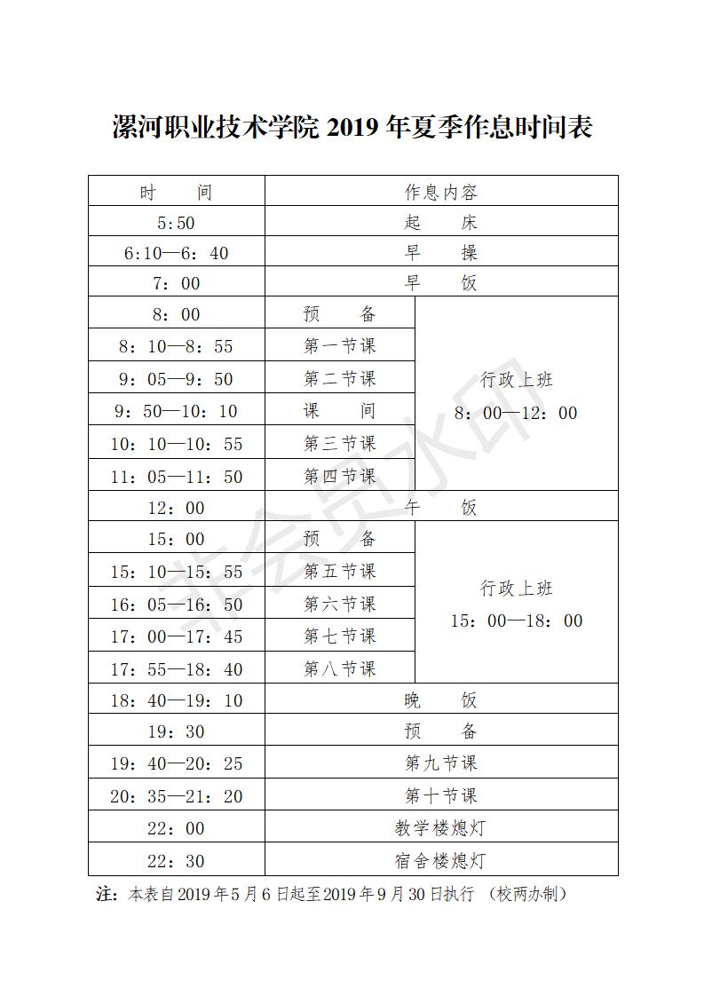 304永利集团登录入口2019年夏季作息时间表