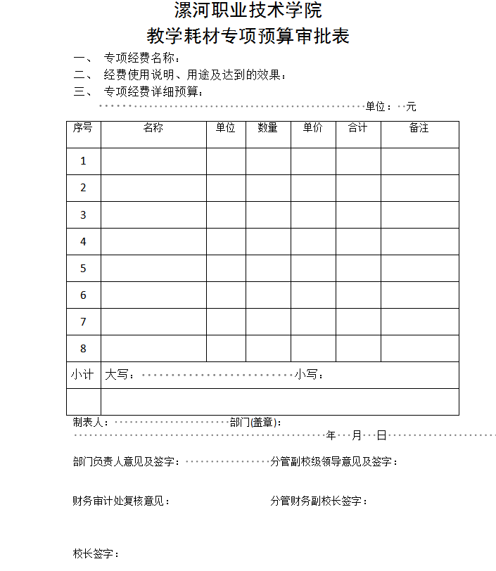 【耗材】304永利集团登录入口教学耗材专项预算审批表