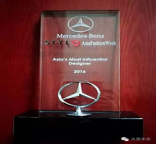 2016年亚洲时装周荣获“亚洲最具影响力设计师”大奖。